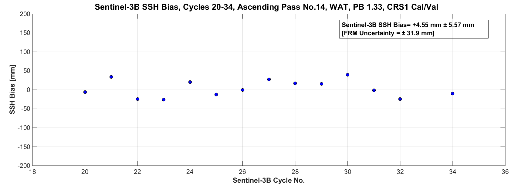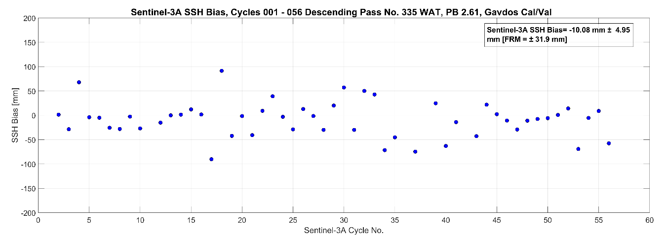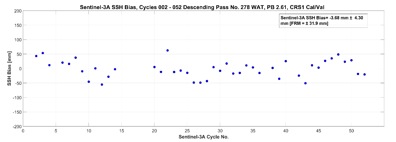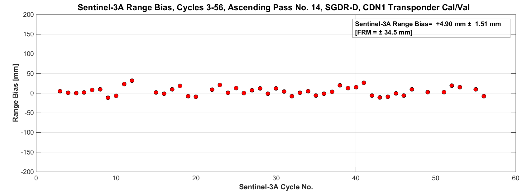 The Sentinel-3 Cal/Val results as of processing of September 2020 and published in Mertikas et al., (2020) [https://doi.org/10.3390/rs12162642] are: