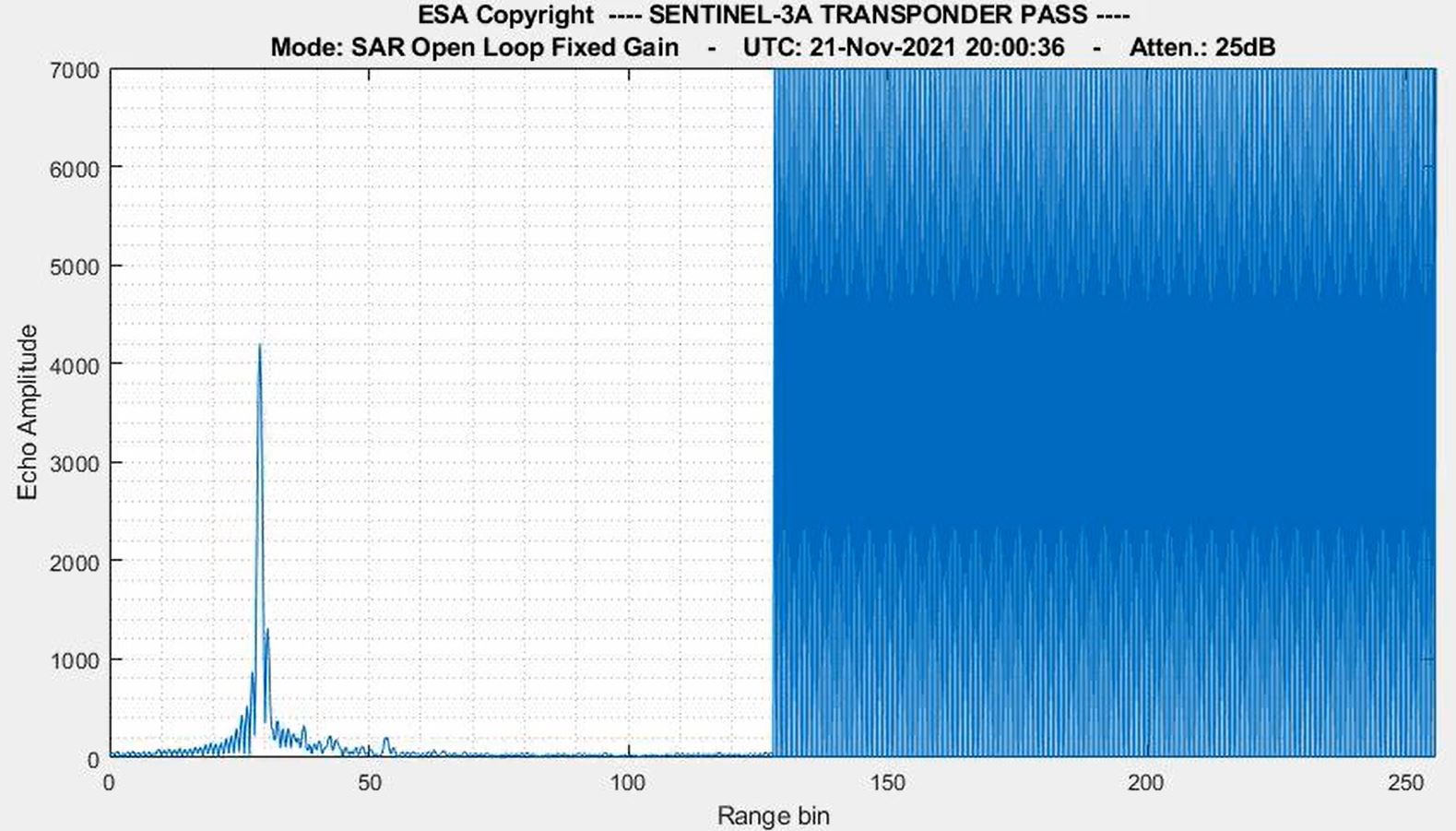 | Transponder responses for the Sentinel-3A mission, 21-Nov-2021 calibration at the CDN1 Cal/Val site. |