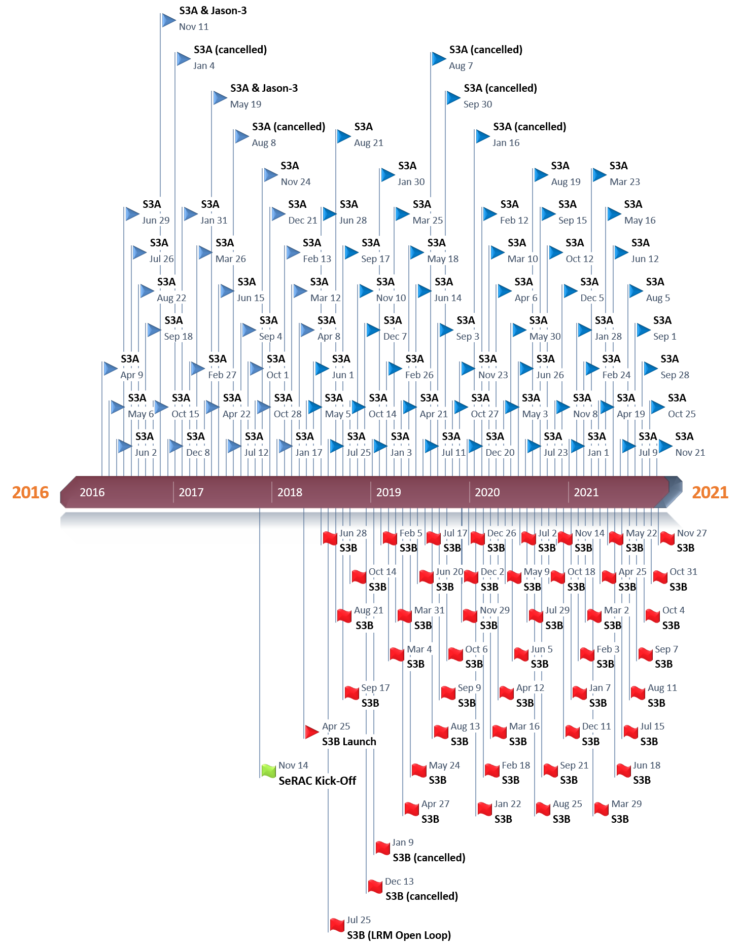 The following transponder calibrations have been carried out so far at the CDN1 Cal/Val site for Sentinel-3A and Sentinel-3B: